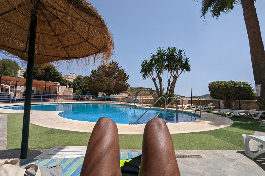 We are finally in Malaga, now as a Brit, I always hear “Malaga”, “Fuengirola”, “Shagalov”, “Marbs” and my semi cultured brain just hears an essex bird (lady for you non – brits) asking for a “PEENOT” while her greasy v-necked boyfriend requesting Ketchup for his Paella. My heart sinks and I claim my Bajan heritage there and then.